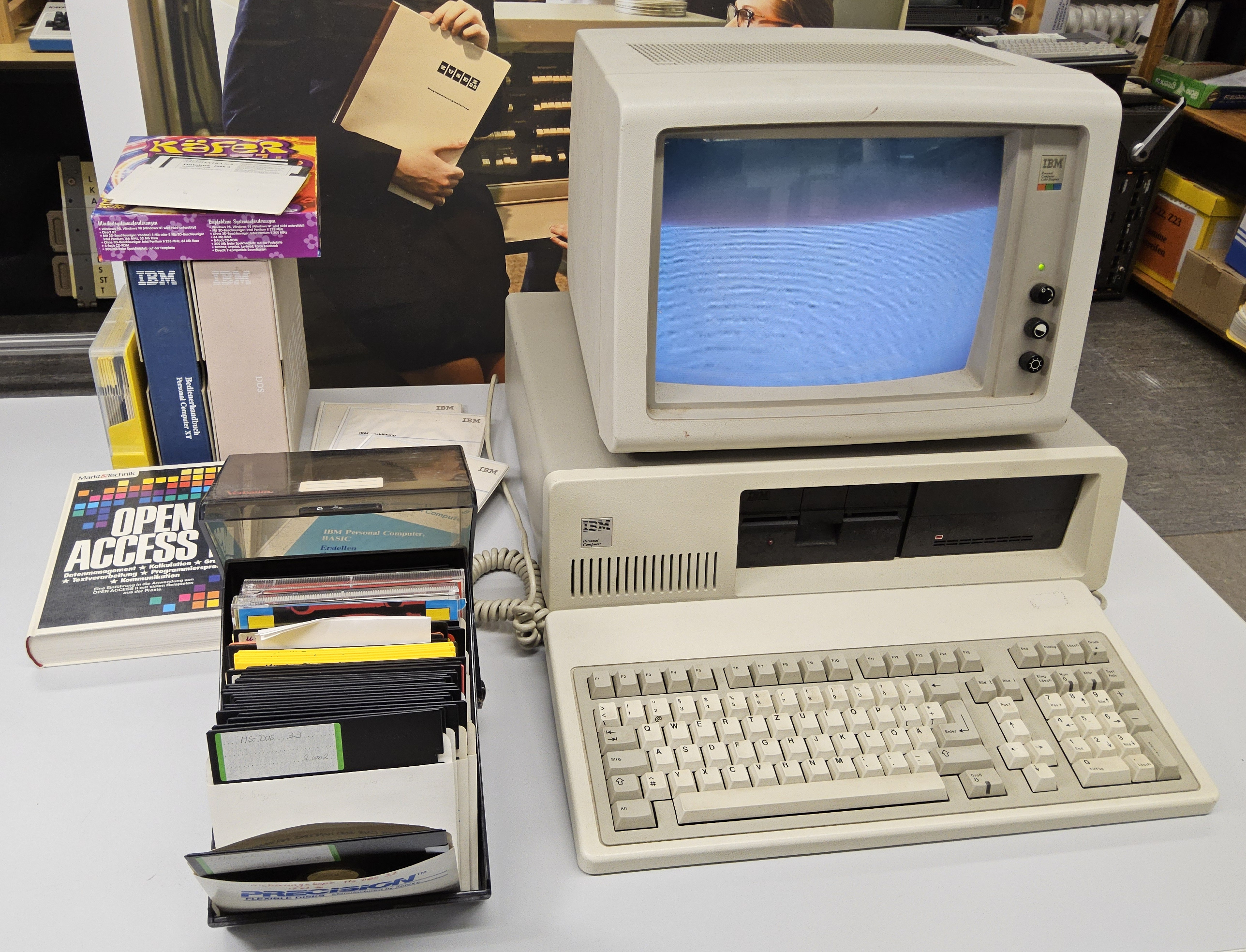 Das hier vorgestellte Objekt ist ein IBM PC, Model 5150 mit Farbgrafikkarte, Speichererweiterung, Farbmonitor und umfangreicher Dokumentation und Software.