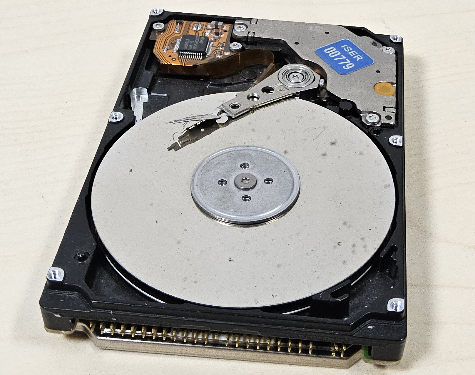 Die Festplatte ist ein präpariertes Präsentationsexemplar gewesen, daher nicht mehr funktionsfähig.