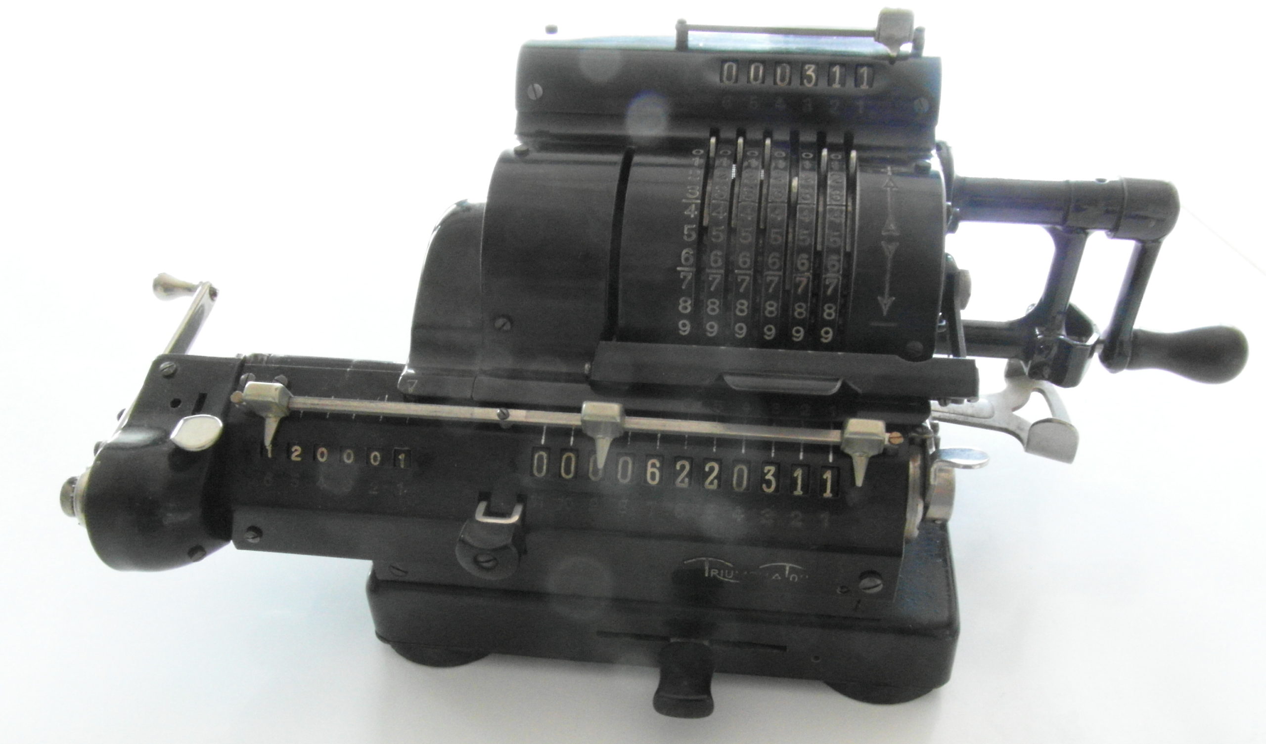 Die Triumphator H3 ist eine Staffelwalzenmaschine mit einem 6-stelligen Eingabewerk, einem 6-stelligen Zählwerk und einem 11-stelligen Resultatwerk.