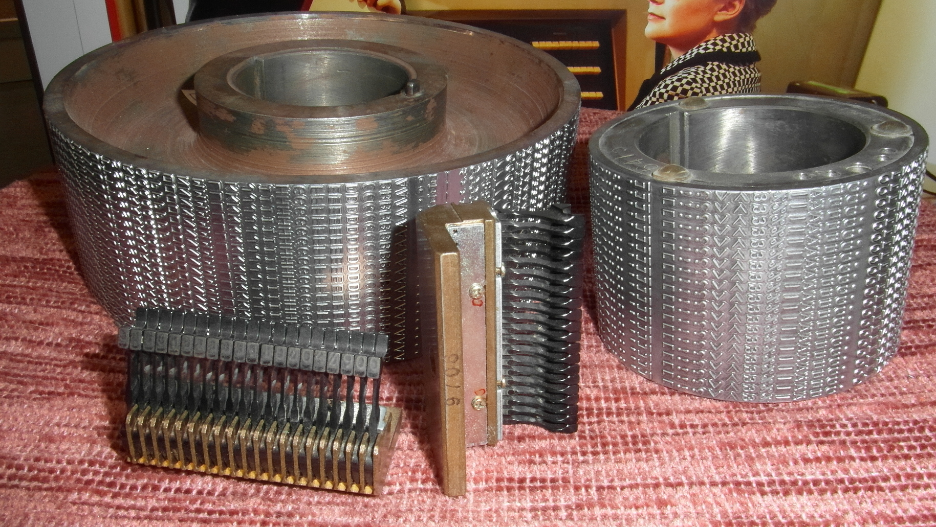Diese Druckwalzensegmente und Hammerbanksegmente stammen aus Telefunken Walzendruckern des Typs SDR 176.