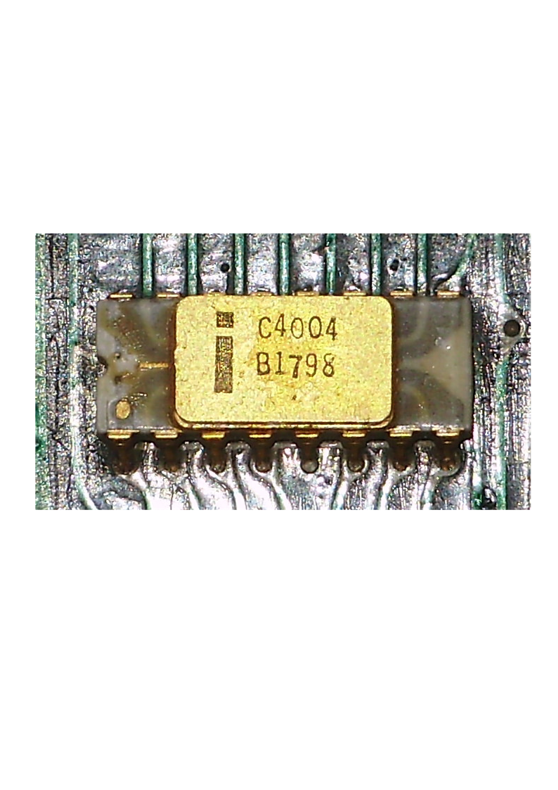 Daraus wurde ein 4 Chip Computer mit dem 4004 als CPU, den 4001 (ROM), 4002 (RAM) und dem I/O Baustein 4003.