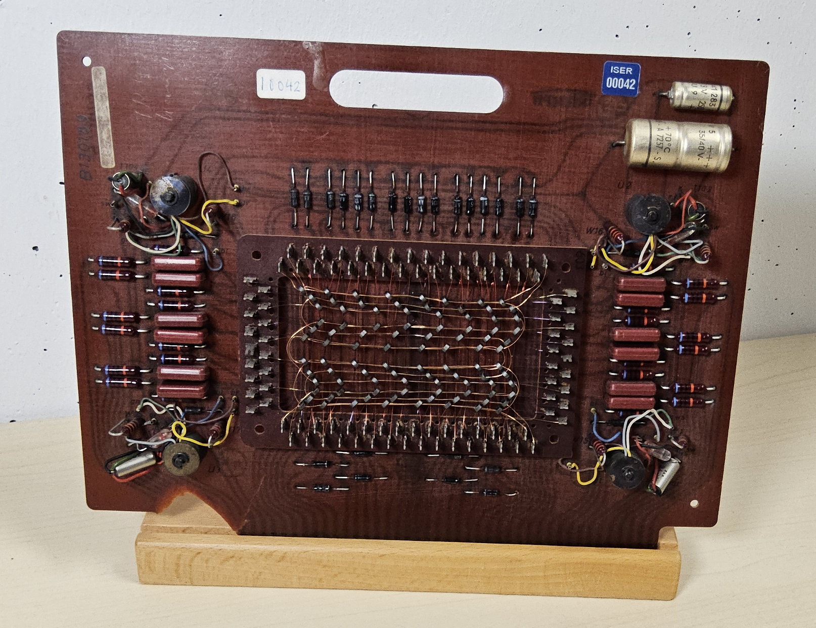 Diese Platine mit einer Kernspeichermatrix stammt aus einer elektronischen Triumph Rechenmaschine oder einem Buchungsautomaten.