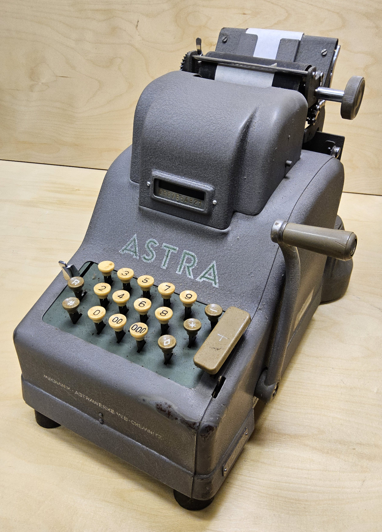 Die typische Astra-Tastatur mit den drei Null-Tasten des ersten Modells A von 1922 wurde auch noch bei diesem Modell beibehalten.