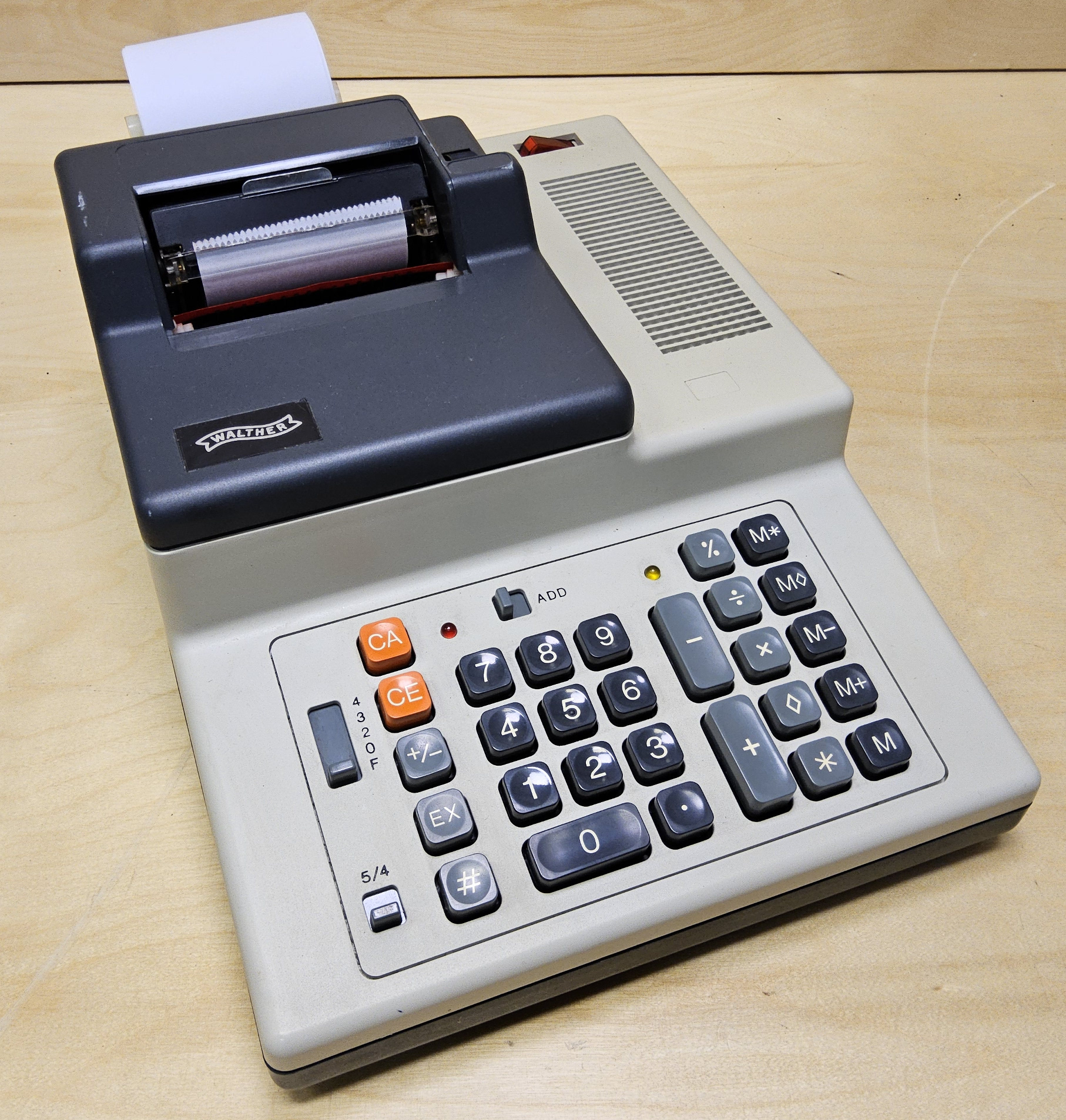 Der Walther ETR 2037 ist ein druckender elektronischer Tischrechner ohne Anzeige.